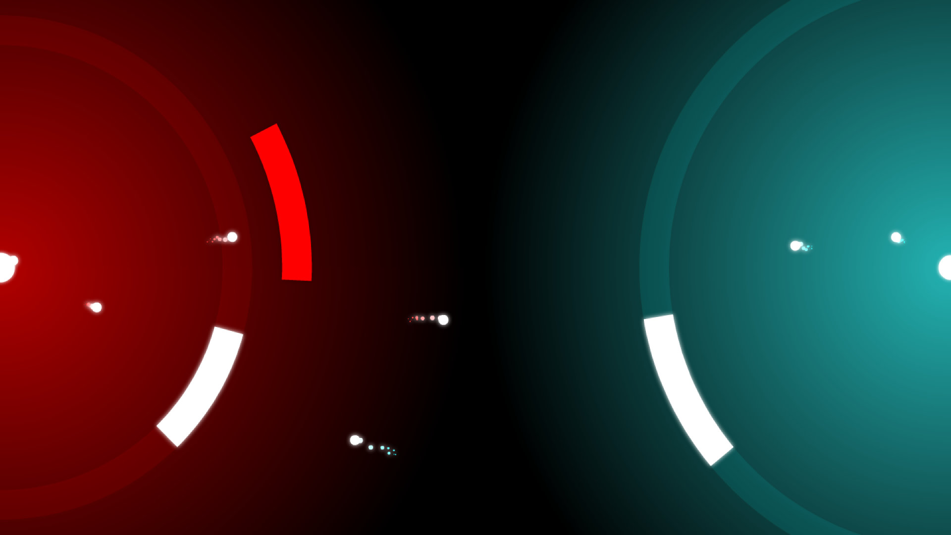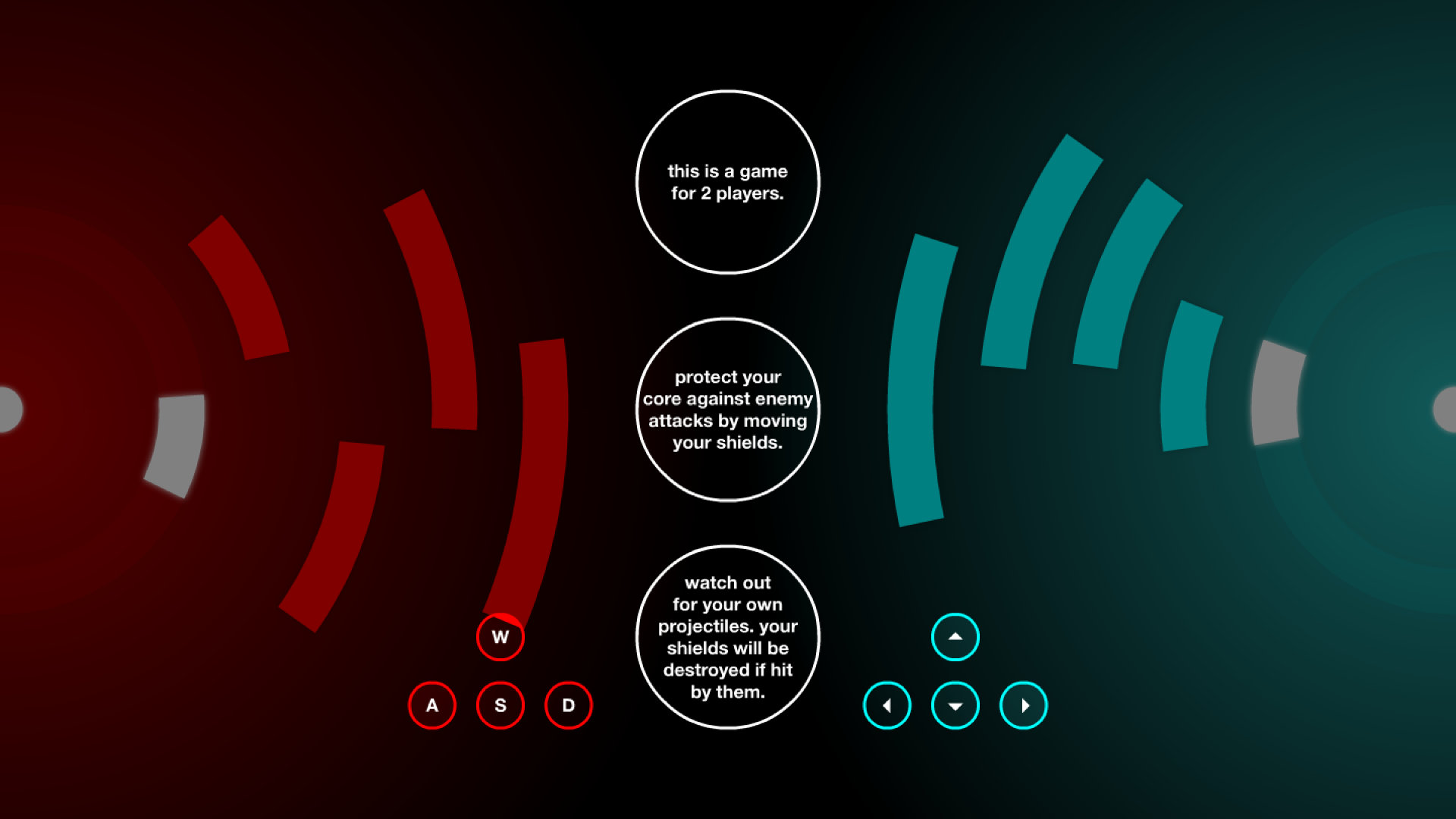 In core9000 two players have to defend their “cores” by rotating their shields. Projectiles continually fire from each core into the opposite direction. While protecting themselves the players also have to watch out for their own projectiles.