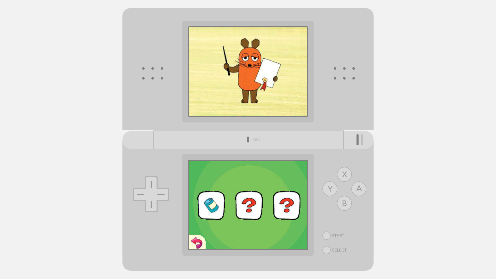 Maus DS is a video game for Nintendo DS featuring the well-known character from German television, Die Maus (the mouse). It was specifically created for young children, who do not have the ability to read yet.